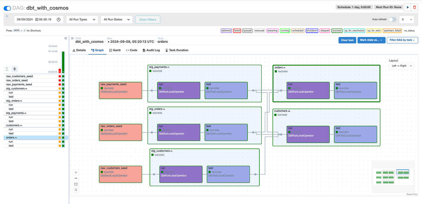The Astronomer-cosmos package for Apache Airflow enables you to run dbt Core projects as Airflow DAGs and Task Groups.
